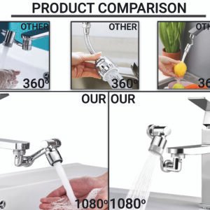 ✔ 360° въртене — можеш лесно да насочиш струята до всяка част на мивката, без пръски.